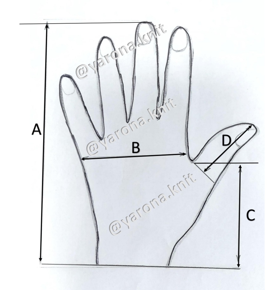 Можна обвести на папері свою руку, або ту на кого хочете зв'язати і робите такі заміри, або ж, робити виміри по прямій відкритій долоні.